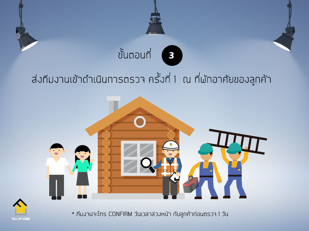 3.จัดส่งทีมงานเข้าดำเนินการ ตรวจบ้านครั้งที่ 1 ณ ที่พักอาศัยของลูกค้า